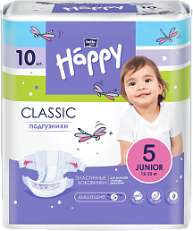 Подгузники Happy Classic Junior 10 шт. вес 12-25кг