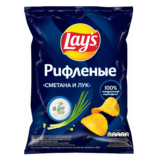 Вкус свежей деревенской сметаны и аромат молодого зеленого лука — отличные спутники для хрустящей картошки. Попробовав однажды эти рифленые чипсы, вы никогда не сможете забыть их нежно-сливочный вкус.
