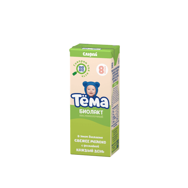 Детский биолакт «Тёма» сладкий отлично подходит для введения в прикорм питьевых кисломолочных продуктов. Содержит лактобактерии L.Acidophilus, полезные для пищеварения.