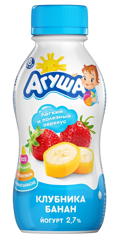 БЗМЖ Йогурт Агуша 2,7% 180г Кл/Банан с 8-ми мес бут.