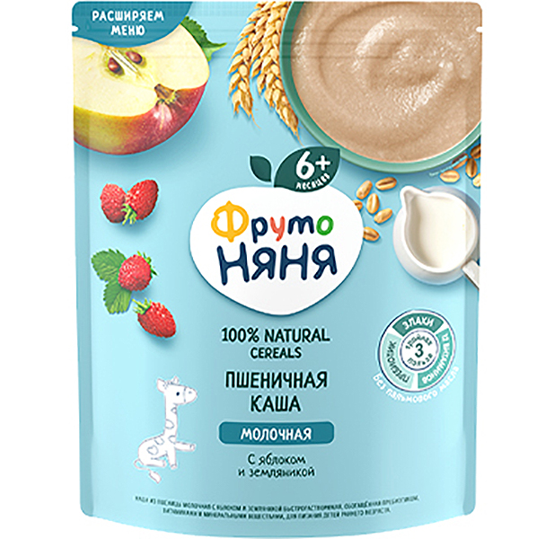 Мука пшеничная, молоко сухое обезжиренное, сахар, масло растительное, пюре яблочное, пюре земляничное, пребиотик-инулин, витамины (С, Е, РР, пантотеновая кислота, В2, В1, В6 А, фолиевая кислота, D3, биотин, В12), минеральные вещества (железо, цинк, йод)