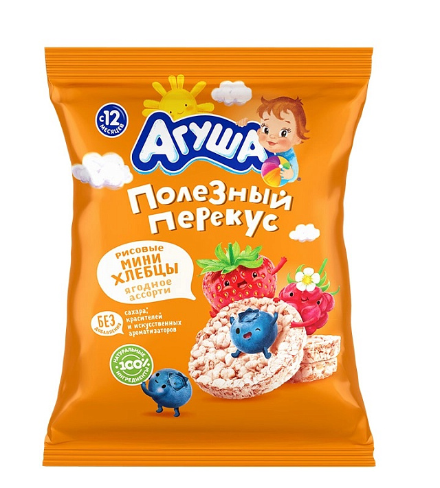 Хлебцы Агуша Рисовые 30г с ягодное ассорти