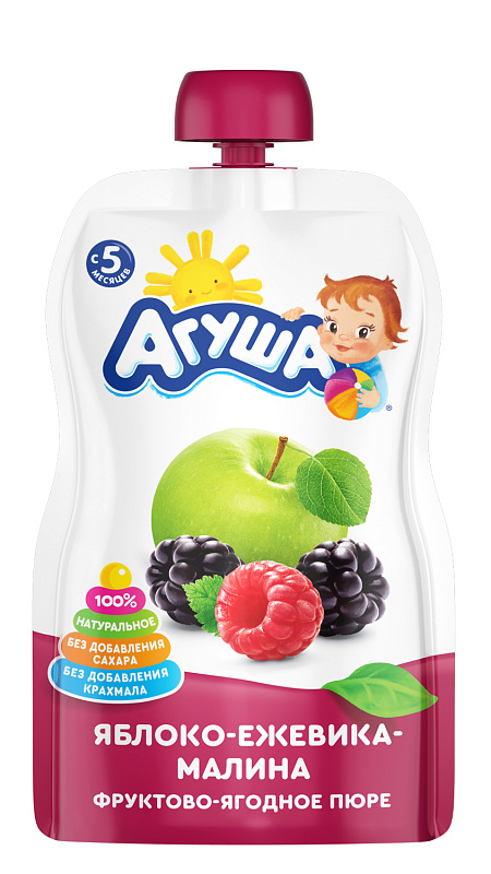 Пюре фрукт. Агуша 90г ябл./ежевика/малина. пауч.