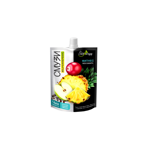 Пюре яблочное, вода, сок ананасовый концентрированный, пюре клюквенное, семена чиа, гуммиарабик (пищевое волокно фибрегам В), антиокислитель - аскорбиновая кислота