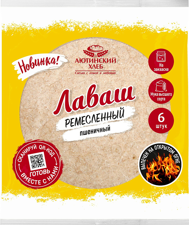 Лаваш ремесленный выпечен особым способом - на открытом огне, благодаря этому лаваш получается нежным и мягким, а закваска делает его особенно ароматным!