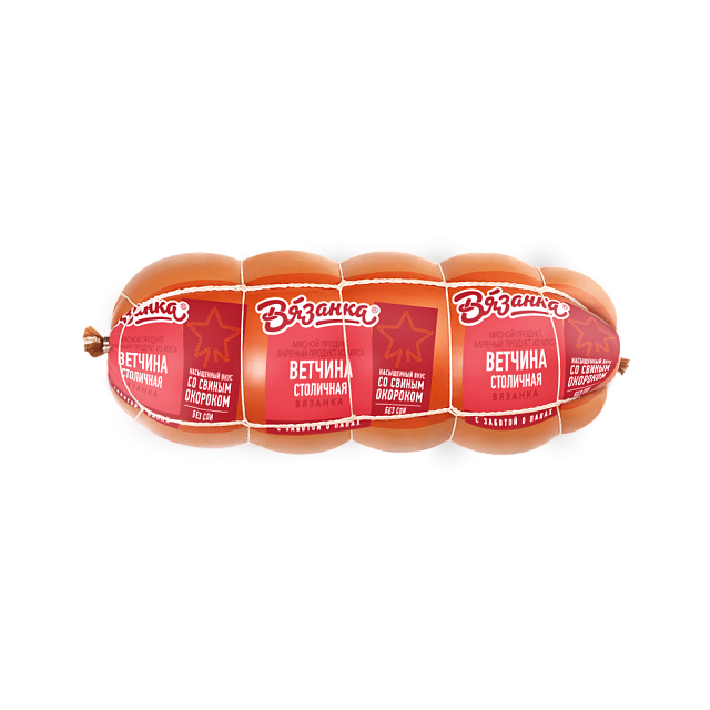 Свинина, мясо птицы кусковое, щековина свиная, белковый стабилизатор (шкурка свиная, вода питьевая), вода питьевая, крахмал кукурузный, смесь посолочно-нитритная (соль, фиксатор окраски: нитрит натрия), соль, стабилизаторы (пирофосфаты, полифосфаты), регуляторы кислотности (трифосфаты, лактат кальция), загустители (каррагинан из водорослей euchema, ксантановая камедь), белок животный (свиной, говяжий), клетчатка пшеничная, виноградный сахар, натуральные пряности и экстракты пряностей, антиокислитель: лимонная кислота, краситель: кармины