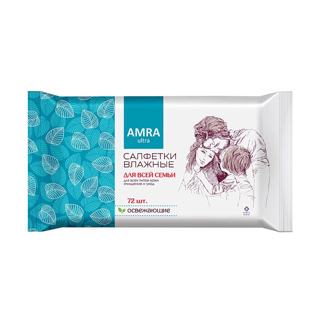 Салфетки влажные AMRA 72шт освеж д/семьи