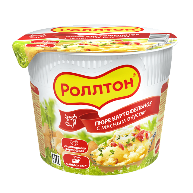 Хлопья картофельные, заменитель сухих сливок на растительной основе (жир растительный, сироп глюкозный, белок молока, эмульгатор Е471), гренки пшеничные (мука пшеничная в/с, масло растительное, соль, дрожжи), лук репчатый жареный, соль, молоко сухое, усилители вкуса и аромата (глутамат, гуанилат и инозинат натрия), сахар, петрушка, лук зеленый, чеснок - сушеные, куркума, ароматизатор (говядина), антиокислитель Е223