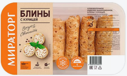 Тесто: вода питьевая, мука пшеничная высшего сорта, масло подсолнечное, сахар, молоко сухое обезжиренное, порошок яичный, соль пищевая, сода пищевая; начинка: мясо цыпленка-бройлера, вода питьевая, лук репчатый, морковь, мука соевая текстурированная, крахмал кукурузный, жир животный топленый пищевой, бульон куриный сухой (ароматизатор курицы), соль пищевая, перец черный молотый