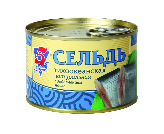 Сельдь 5Морей натуральная с добавлением масла 250г