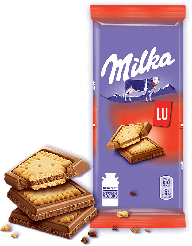 Шоколад молочный (сахар, масло какао, молоко сухое обезжиренное,какао тертое, сыворотка сухая молочная, жир молочный, эмульгаторы (лецитин соевый, Е 476), ароматизатор), печенье 26 % (мука пшеничная, сахар, масло пальмовое и олеин пальмовый, масло сливочное, молоко сухое цельное,сироп глюкозный, соль, молоко сухое обезжиренное, ароматизаторы, разрыхлители (Е 450і, натрия гидрокарбонат, аммония гидрокарбонат), солодовый экстракт из ячменя, крахмал пшеничный, эмульгатор (лецитин соевый)