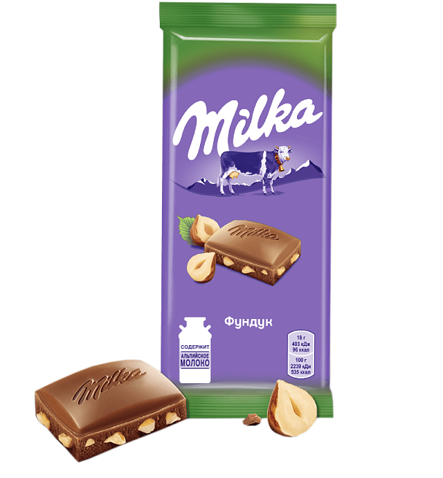 Шоколад Milka молочный фундук дробленный 85г