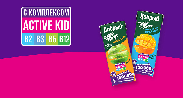 Яблочный сок, яблочное пюре, витаминный комплекс active kid (В2, В3, В5, В12)