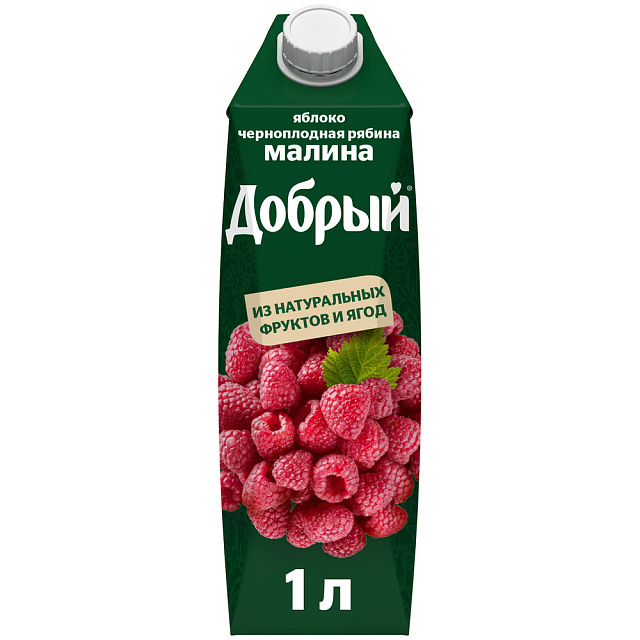 Добрый яблоко-черноплодная рябина-малина содержит природные антоцианы малины, яблока и аронии (черноплодной рябины), которые являются мощными антиоксидантами, защищающими наш организм от свободных радикалов и поэтому замедляющими процесс старения. Калий, содержащийся в этом нектаре, улучшает общее самочувствие испособствует хорошей работе сердца.