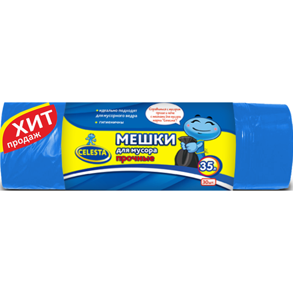 Мешки для мусора Celesta 35л 30шт синие прочные 2558