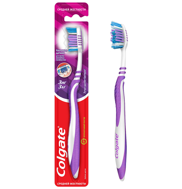 Оцените зубную щетку Колгейт Зигзаг с щетинками средней жесткости, которая прекрасно подходит не только для очищения полости рта, но и для чистки между зубами.