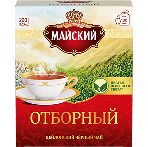Специально отобранный на Цейлоне крупный чайный лист весеннего сбора и бережная скрутка делают напиток особенно нежным, раскрывая все богатство вкуса и аромата классического черного чая Майский: терпкий и полный, с ярким насыщенным ароматом и фруктовыми нотами.