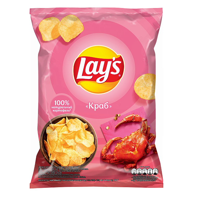 Специально для ценителей мы приготовили хрустящие чипсы Lay's со вкусом нежного камчатского краба. Отличное сочетание вкуса краба и золотистых картофельных чипсов подарят вихрь удовольствия!
