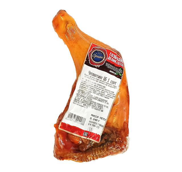 Четвертинка цыплят-бройлеров, вода, соль пищевая, фосфат, чеснок, перец черный, сахар, фиксатор окраски Е250