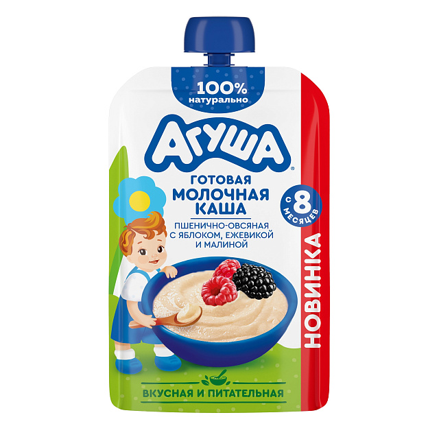 БЗМЖ Каша Агуша 100г Ябл/Еж/Мал/Пш.Ов. с 8-ти мес. пауч