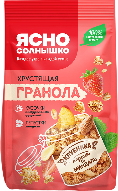 Гранола Ясно Солнышко с клубникой,персиком,миндалем 250г