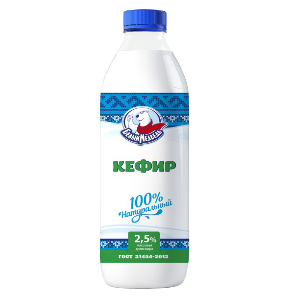 БЗМЖ Кефир Белый Медведь 2,5% 900г п/бут.