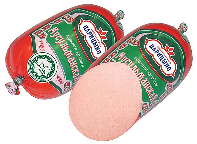 Мясо курицы механической обвалки, вода питьевая, говядина, соевый белок, крахмал картофельный, соль, говяжий животный белок, комбинированные смеси специй (стабилизатор-три-, пиро- фосфаты натрия, гуаровая, рожкового дерева и ксантановая камеди, усилитель вкуса-глутамат натрия, антиокислитель- аскорбинов.к-та), пряности, натуральный пищевой краситель (красный ферментированный рис), фиксатор окраски (нитрит натрия)