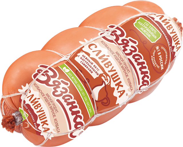 Свинина, филе куриной грудки, вода питьевая, белковый стабилизатор (шкурка свиная, вода питьевая), сыворотка молочная сухая, крахмал кукурузный, смесь посолочно-нитритная (соль, фиксатор окраски: нитрит натрия), соль, белок животный (говяжий), сливки сухие, стабилизаторы (пирофосфаты, полифосфаты), регулятор кислотности: трифосфаты, загустители (камеди: гуаровая, тары, ксантановая), натуральные пряности и экстракты пряностей, виноградный сахар, антиокислитель (лимонная кислота, аскорбиновая кислота), краситель: кармины