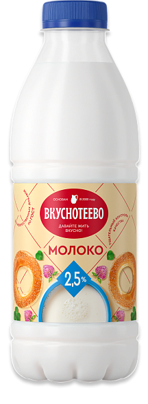 БЗМЖ Молоко Вкуснотеево 2,5% 900г п/бут.пастер.