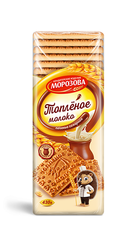 Мука пшеничная, сахар, жир кондитерский (рафинированные, дезодорированные, фракционированные растительные масла, эмульгаторы – лецитин соевый, моно- и диглицериды жирных кислот), вода питьевая, инвертный сироп (сахар, вода питьевая, регулятор кислотности – лимонная кислота), меланж яичный (яйца куриные пищевые), молоко питьевое топленое, сыворотка молочная сухая, соль, разрыхлители - гидрокарбонат натрия (сода пищевая) и карбонаты аммония, эмульгатор - лецитин соевый, ароматизатор