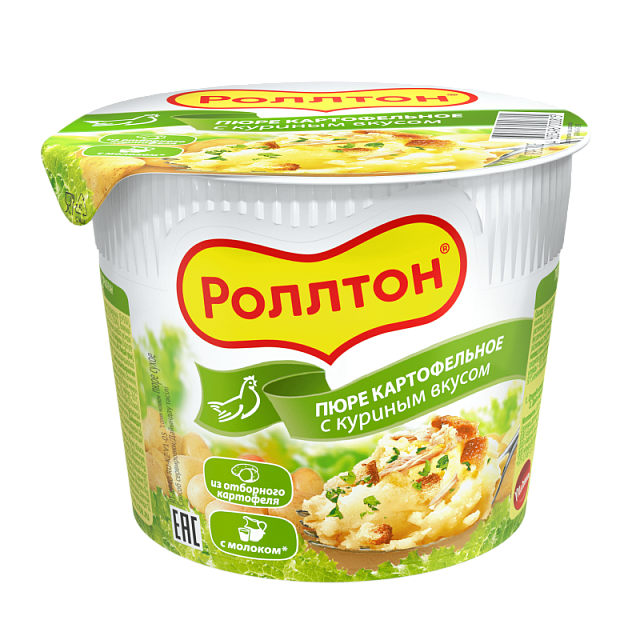Хлопья картофельные, заменитель сухих сливок на растительной основе (жир растительный, сироп глюкозный, белок молока, эмульгатор Е471), гренки пшеничные (мука пшеничная в/с, масло растительное, соль, дрожжи), лук репчатый жареный, соль, молоко сухое, усилители вкуса и аромата (глутамат, гуанилат и инозинат натрия), сахар, петрушка сушеная, куркума, ароматизатор (курица), антиокислитель Е223
