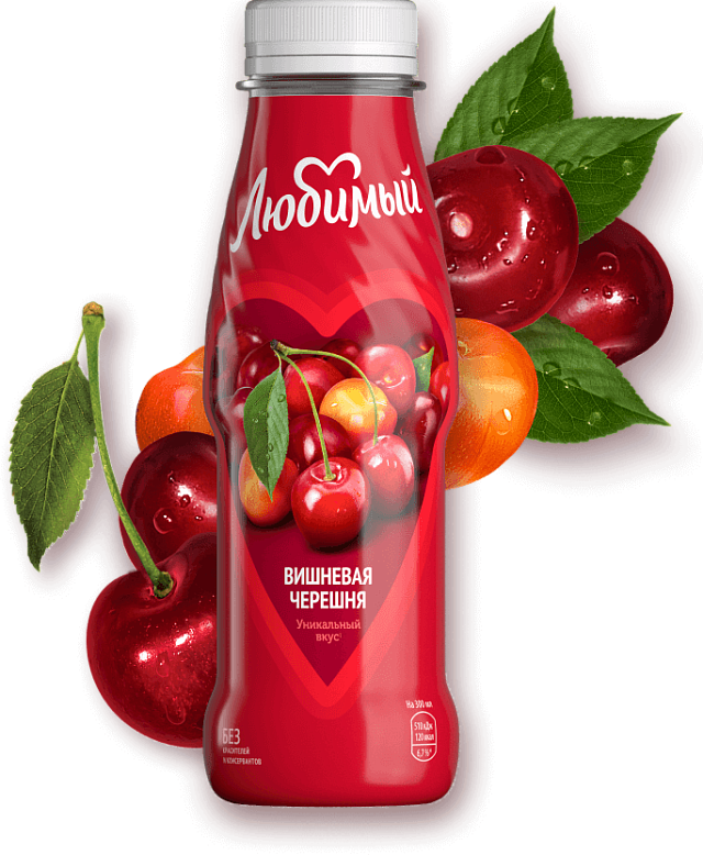 Яблочный сок, вишневый сок, сок из черешни, сахар (S) или сахар и глюкозно-фруктозный сироп (G), регулятор кислотности – лимонная кислота, ароматизаторы натуральные, вода