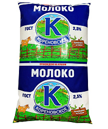 БЗМЖ Молоко Кореновочка 2,5% 900г пленка