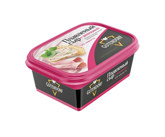 Сыры (молоко пастеризованное, соль пищевая, уплотнитель-хлорид кальция, ферментный препарат микробного происхождения, бактериальный концентрат молочнокислых бактерий), вода питьевая, масло сливочное, творог (молоко пастеризованное, концентрат молочнокислых бактерий), молоко сухое обезжиренное, сыворотка сухая молочная, ветчина (свинина, соль пищевая), эмульгаторы (Е339, Е450, Е452), стабилизатор Е 1420, молочный белок (казеин), соль пищевая, ароматизатор (мальтодекстрин, соль пищевая, сыворотка молочная сухая, глюкоза, натуральные вкусоароматические вещества, сырный порошок), регулятор кислотности лимонная кислота, консервант сорбат калия