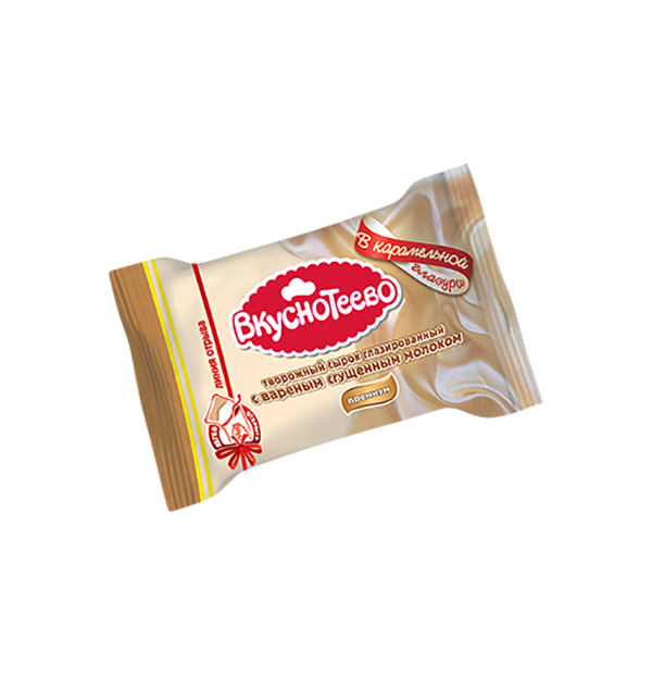 Творог, наполнитель продукт молочный сгущенный с сахаром варенка – молоко цельное сгущенное с сахаром вареное (молоко цельное, молоко обезжиренное, сахар), глазурь карамельная (масло сливочное, сахар, сухое обезжиренное молоко, сахар карамелизованный, какао-порошок), сахар