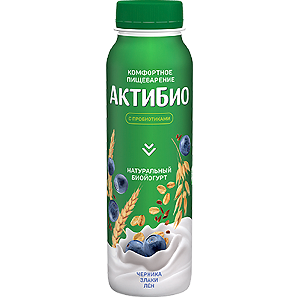 Нормализованное молоко, восстановленное молоко из сухого молока, наполнитель (вода, черника, сахар, пюре черники, овсяная крупа, пшеница плющеная, семена льна, смесь зерновая 5 злаков (ржаные, пшеничные, овсяные, ячменные, спельтовые хлопья), ржаные отруби, крахмал кукурузный, натуральные ароматизаторы, сок черной моркови концентрированный, сок лимона концентрированный, стабилизатор – пектины), сахар, йогуртовая закваска, бифидобактерии ActiRegularis