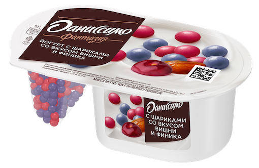 БЗМЖ Йогурт Даниссимо Фантазия 105г хр.шарики Вишня/Финик