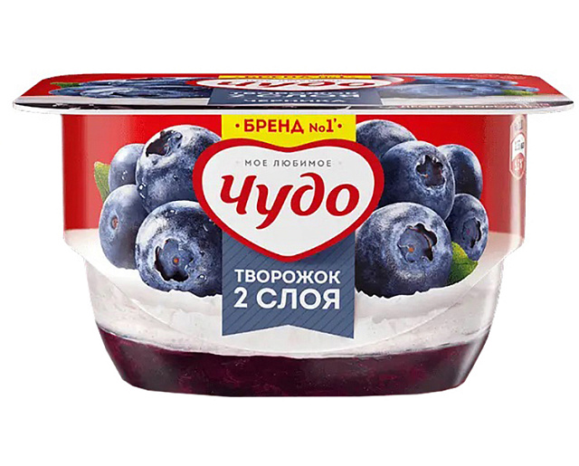 Творог, сливки, сахар, молоко цельное, черника, вода, глюкозно-фруктозный сироп, стабилизаторы (дикрахмаладипат ацетилированный, дикрахмалфосфат оксипропилированный, желатин, пектин, гуаровая камедь, ксантановая камедь, камедь рожкового дерева, камедь тары), молоко сухое обезжиренное, ароматизатор идентичный натуральному - черника, регуляторы кислотности (лимонная кислота, цитрат натрия), с использованием закваски